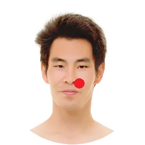 Lage – Hierbei wird der Bereich neben den Nasenflügeln mit der Muskulatur des Handballens des Daumens massiert.