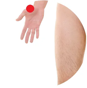 Lunge 10 liegt dabei mittig in der Muskulatur des Handballens und Dickdarm 20 am Ende des Nasenflügels. Zur Selbstmassage die Handflächen aneinander bringen und die Finger verschränken.